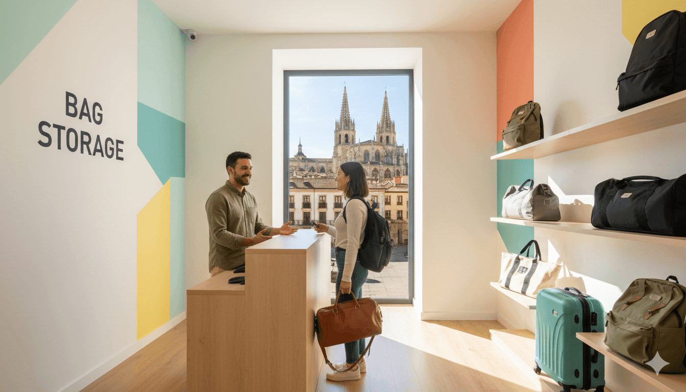 The main rail station sits northeast of the center and is key for AVE and long-distance arrivals. Choosing storage connected to your route helps if you reach Burgos early or leave after checkout.